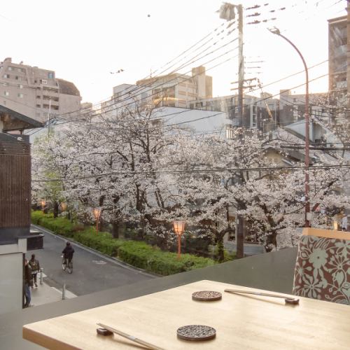 교토 가와라마치 역 바로의 좋은 입지 ♪ 카모가와를 바라 볼 수있는 자리, 벚꽃 시즌은 만개 한 벚꽃을 바라 보면서 식사하실 수있는 자리도 준비하고 있습니다!
